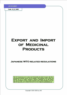 Click on the sub-categories of the menu in the left side to view the available documents. Notifications and Guidelines Enforcement Regulations of PAL: Regulations for Buildings and Facilities (Single User License)Code:7_D_B001Price: $375.00 Quantity in Basket: none Enforcement Regulations of PAL: Regulations for Buildings and Facilities (Enterprise License)Code:7_D_B002Price: $1,950.00 Quantity in Basket: none Standards for QA for Drugs, Quasi-drugs, Cosmetics and Medical Devices (Single User License)Code:7_D_B003Price: $275.00 Quantity in Basket: none Standards for QA for Drugs, Quasi-drugs, Cosmetics and Medical Devices (Enterprise-wide Use License)Code:7_D_B004Price: $1,450.00 Quantity in Basket: none Standards for Manufacturing Control and QA for Medical Devices / In-vitro Diagnostics (Single User)Code:7_D_B005Price: $475.00 Quantity in Basket: none Standards for MC and QA for Medical Devices / In-vitro Diagnostics (Enterprise License)Code:7_D_B006Price: $2,950.00 Quantity in Basket: none Agreement on Mutual Recognition between Japan and EC: Japanese RegulationsCode:7_D_K001Price: $150.00 Quantity in Basket: none Manufacture and Quality Control of Drugs and Medical Devices Originating from Living OrganismsCode:7_D_K003Price: $375.00 Quantity in Basket: none MHLW Notification No. 210 - Standards for Raw Materials Originating from Living OrganismsCode:7_D_K004Price: $475.00 Quantity in Basket: none Self-inspection of Orthopedic Surgery Appliances and Devices (Single User License)Code:7_D_K005Price: $125.00 Quantity in Basket: none Self-inspection of Orthopedic Surgery Appliances and Devices (Enterprise-wide Use License)Code:7_D_K006Price: $950.00 Quantity in Basket: none Export and Import of Medicinal Products - Japanese WTO related regulationsCode:8_D_K001Price: $150.00 Quantity in Basket: none